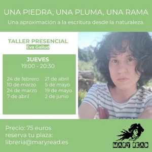 A través de distintas lecturas y de ejercicios prácticos de escritura, partiremos de un entorno o elemento natural que nos servirá para provocar y modelar la escritura de distintos géneros –desde textos autobiográficos como diarios o memorias, hasta el ensayo y la ficción–, cada uno con sus particularidades, porque no es lo mismo escribir una entrada de diario desde una piedra que una memoria desde una rama o un relato desde una pluma.